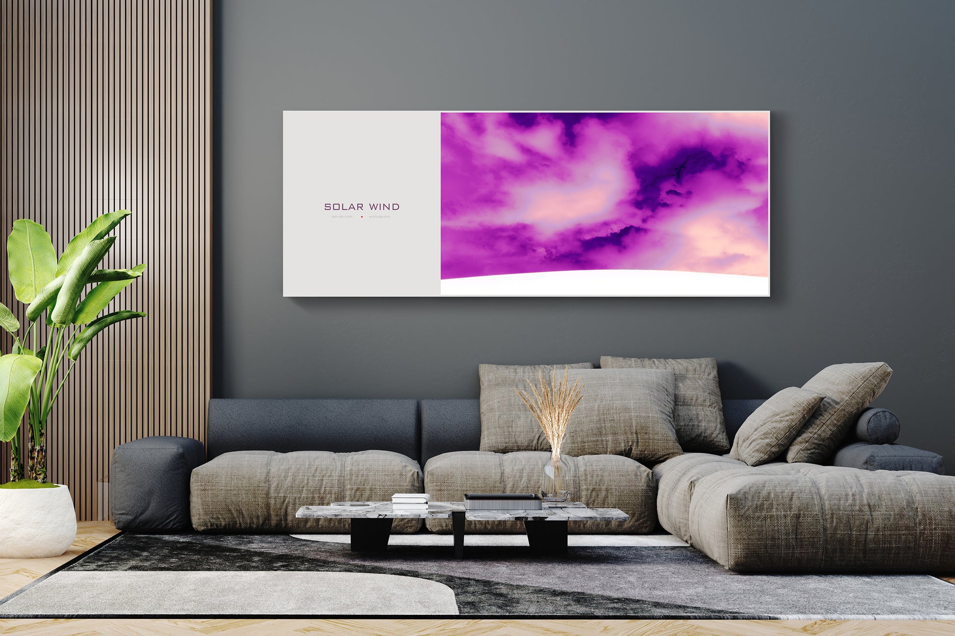 Interior picture (left) shows sample display of a metal/acrylic print (no frame required). Interior picture (right) shows sample display of a paper print with custom framing. Paper print not available in 68" width.