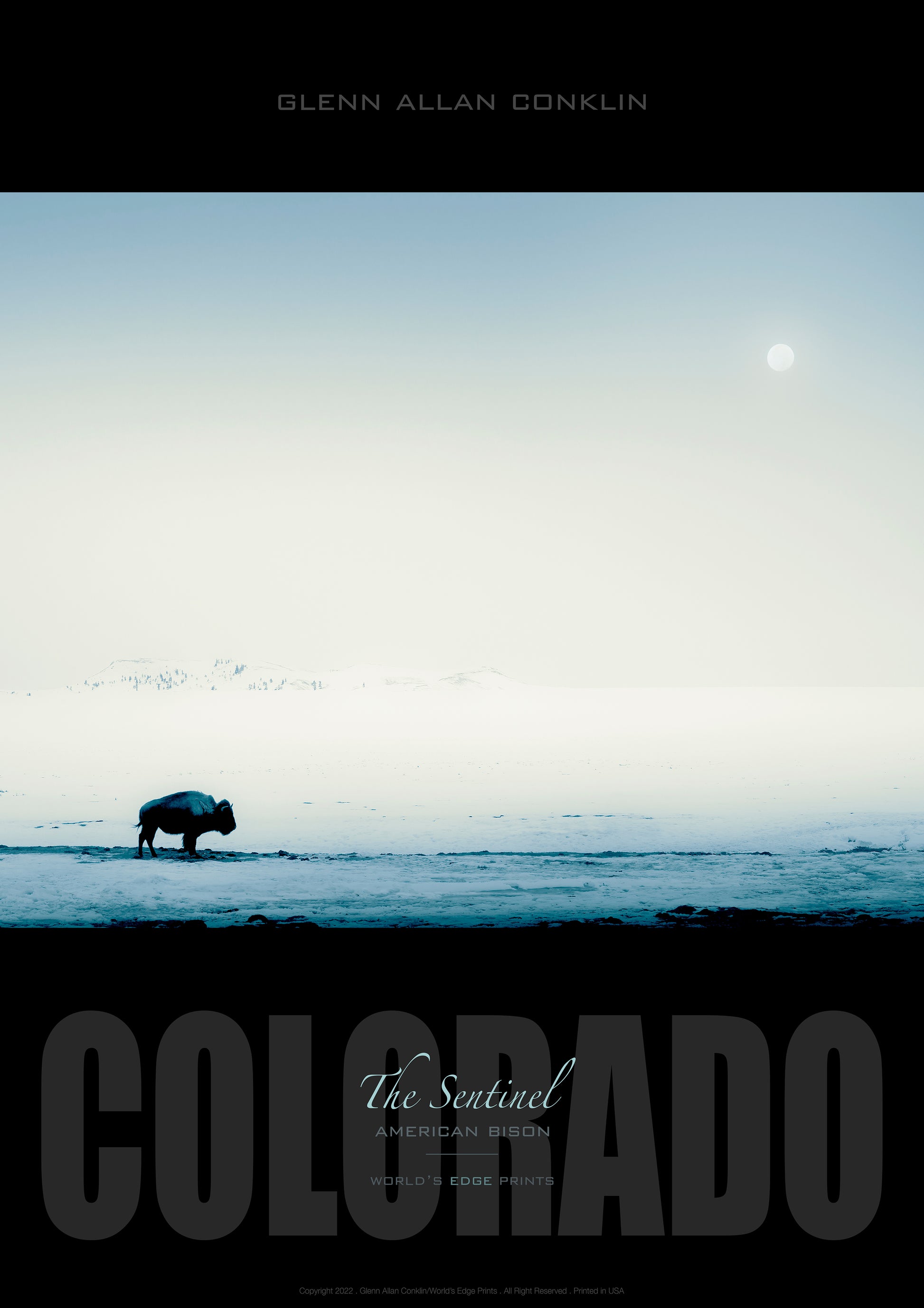 The Sentinel - A lone American Bison stands watch over the frozen lands near South Park, Colorado